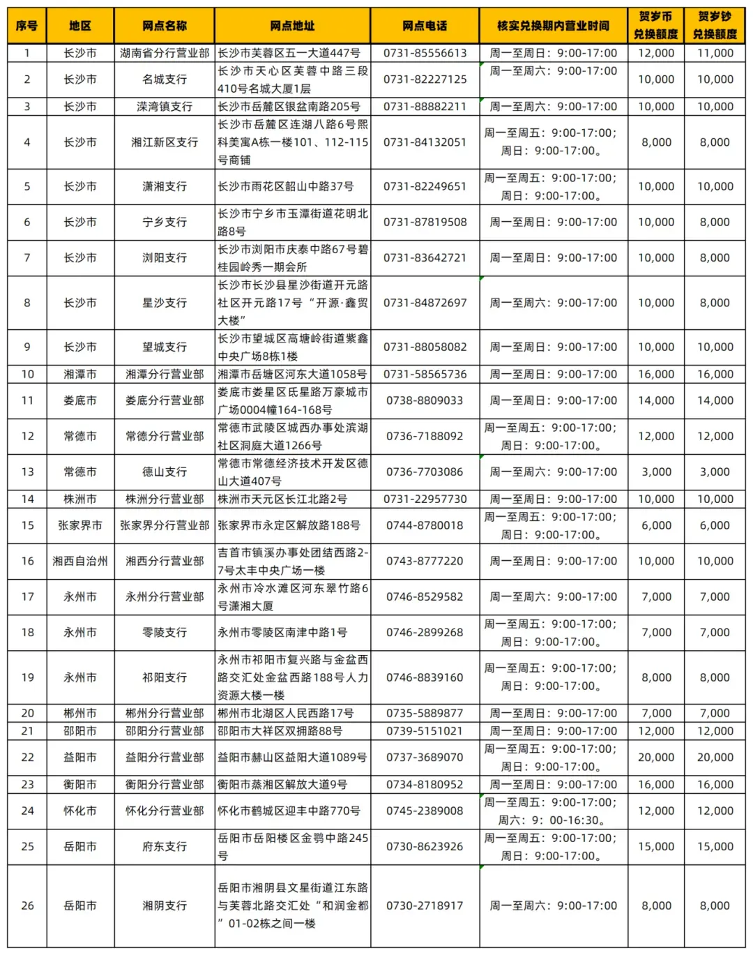 湖南省预约兑换银行有:农行,建行,交行,华夏银行,长沙银行,邮储银行
