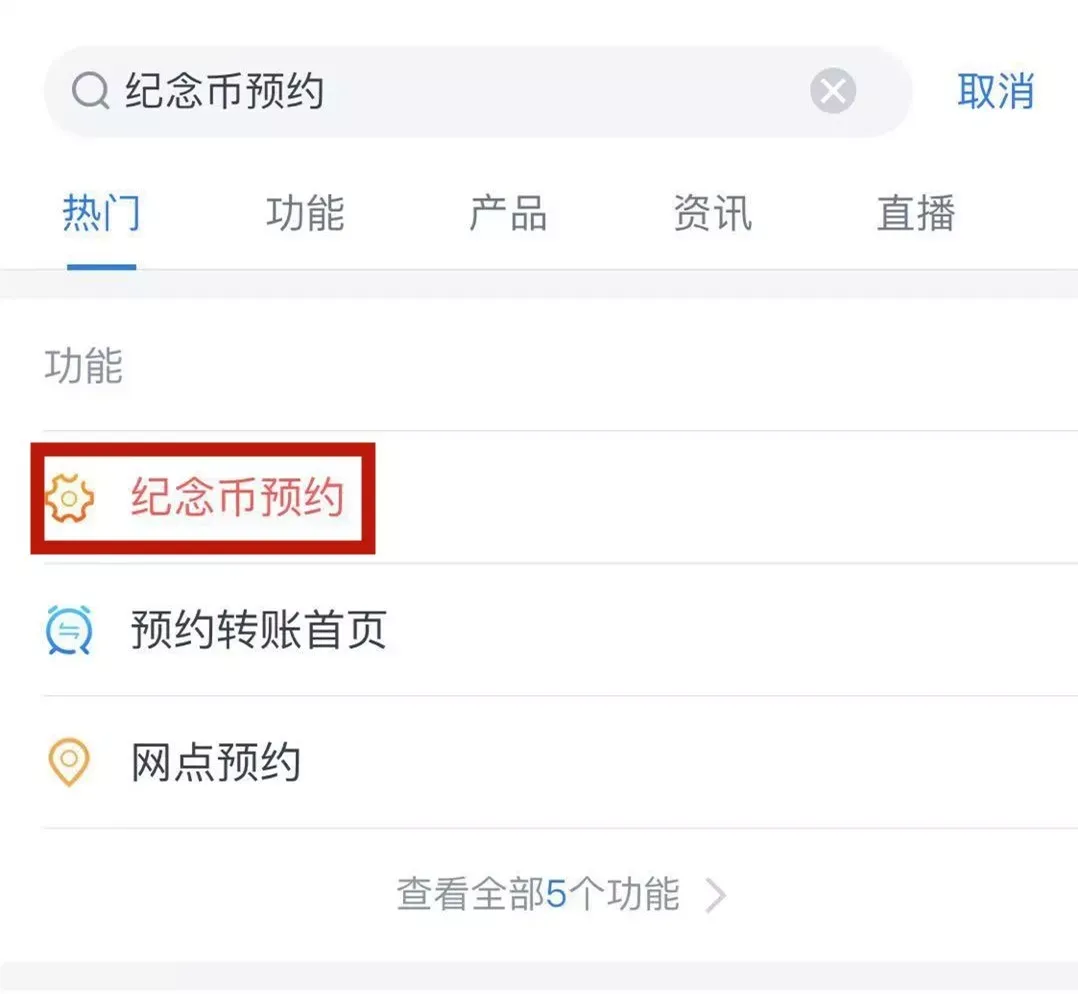 第二步:在首页搜索框内搜索“纪念币预约”,再点击“纪念币预约”即可。