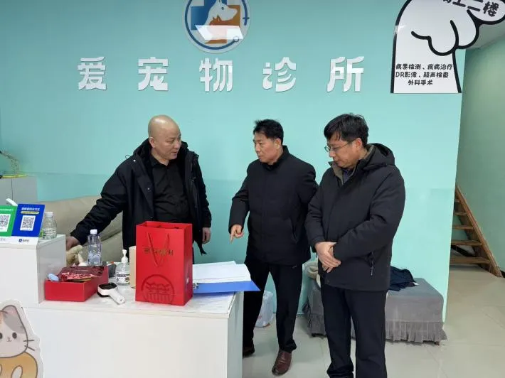 1月5日,中心领导杨健带队到坛山街道、榴园镇2家动物诊疗机构开展监督检查活动。