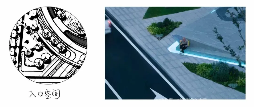 主轴线:入口空间——阳光草坪——休憩空间