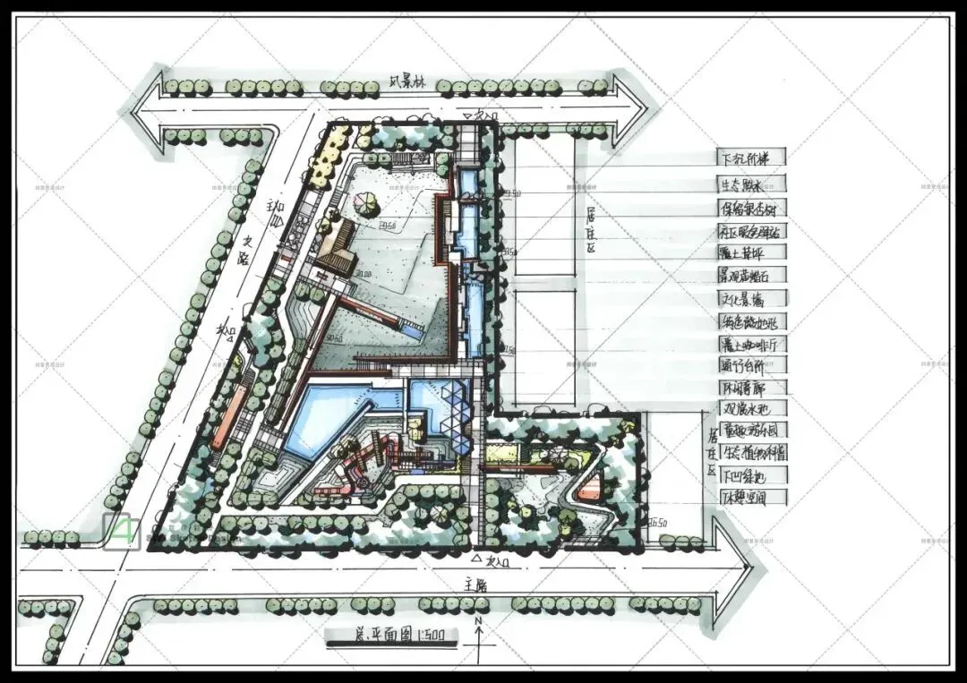 生态韧性基础设施:积极响应海绵城市建设要求,配置必要的雨水花园、下沉式绿地等生态设施,实现场地雨水的有效收集与渗透,构建绿色可持续的生态底盘。