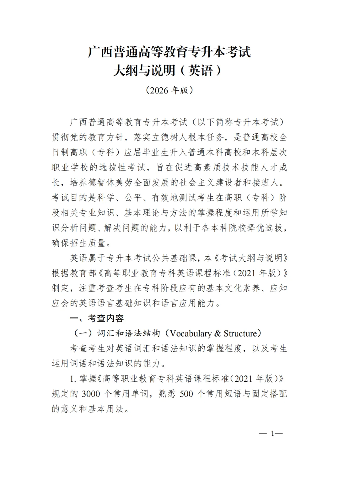 广西普通高等教育专升本考试