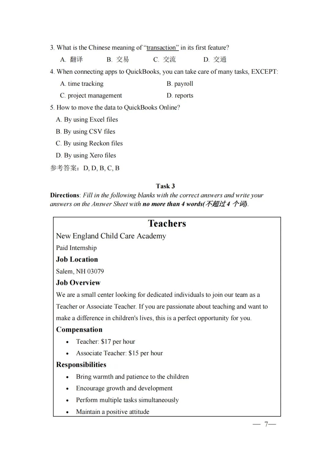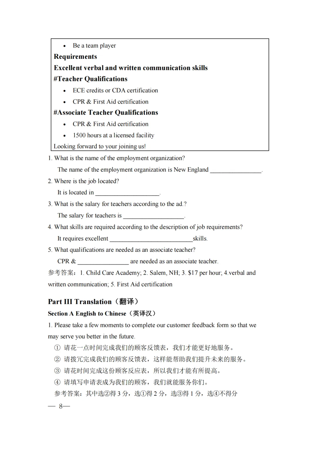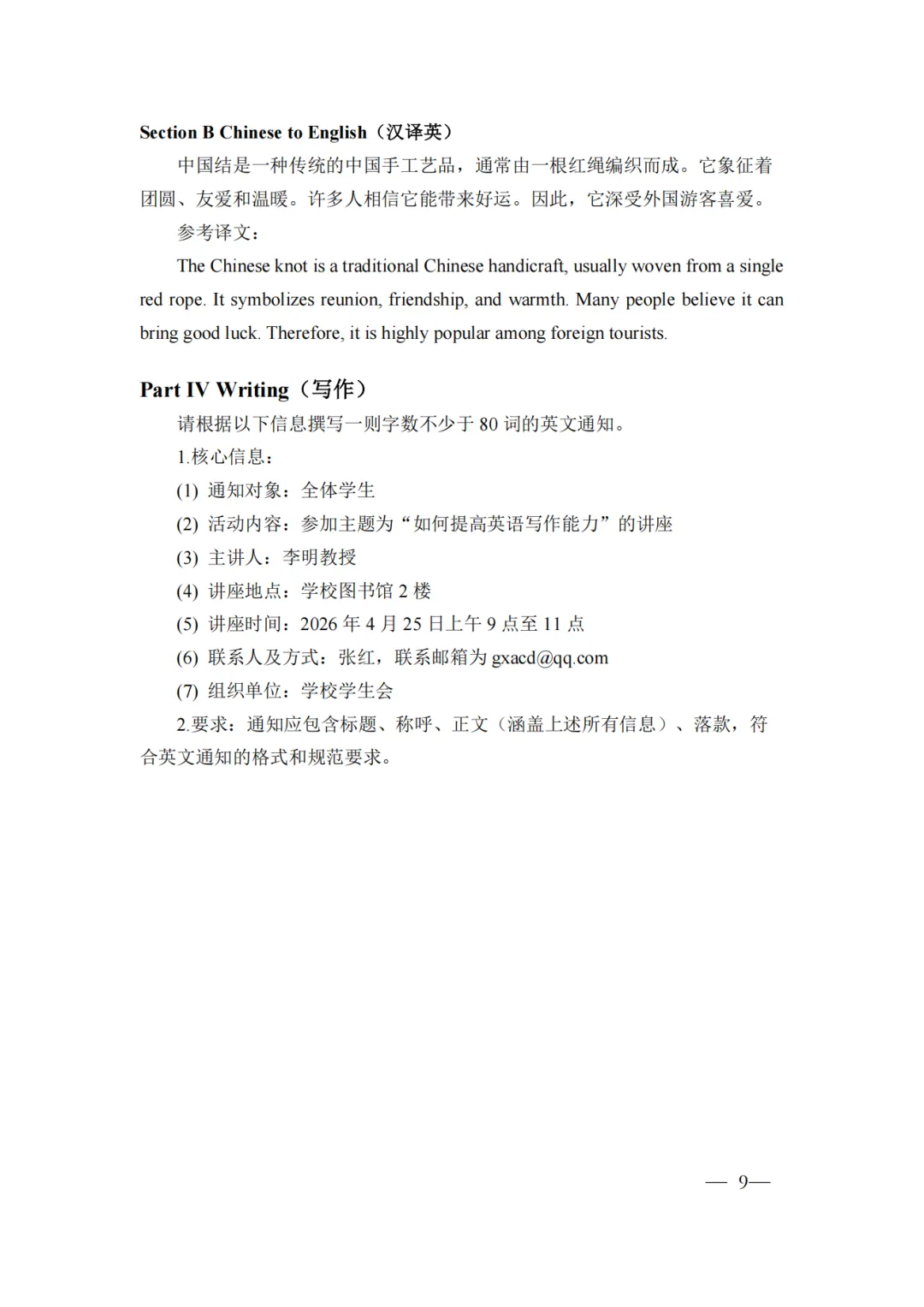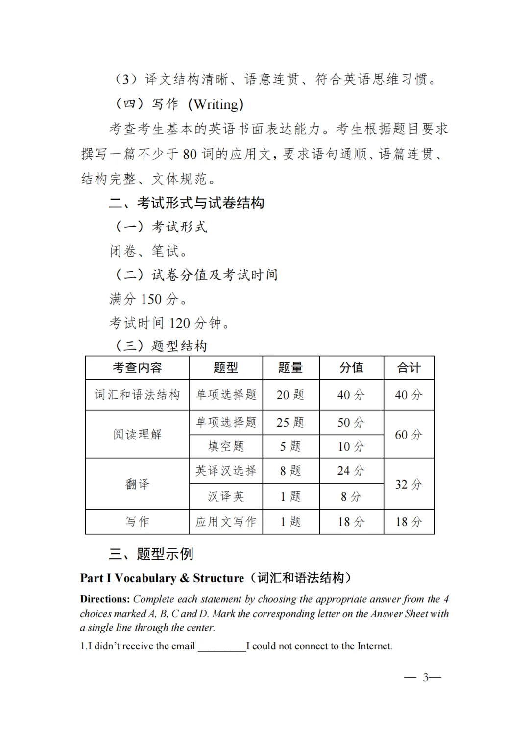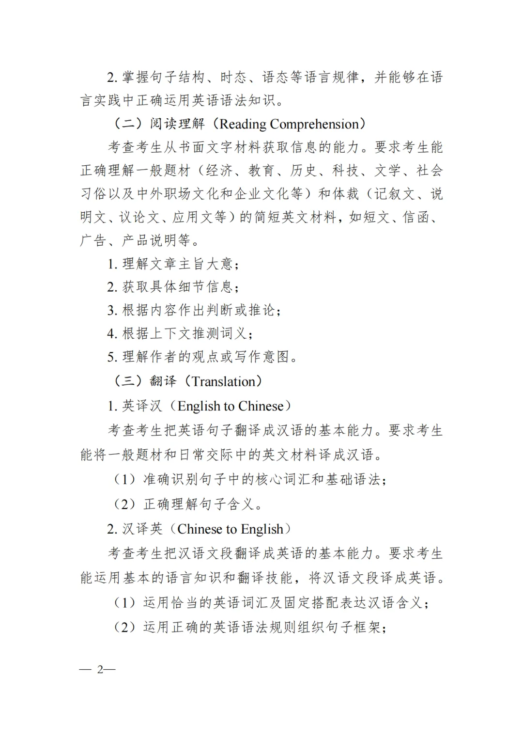 《考试大纲与说明》 ( 英语 )