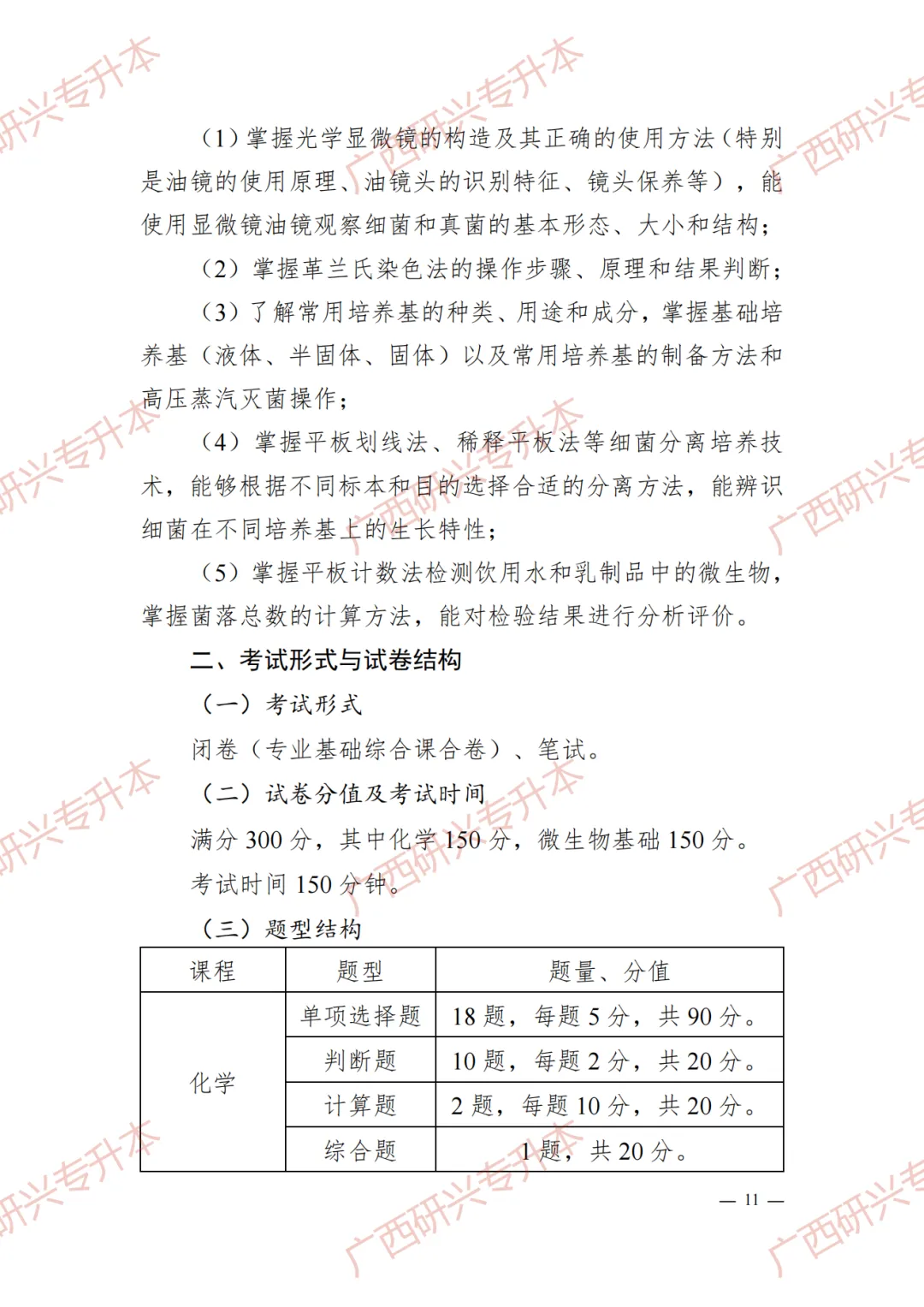 英语(150分,120分钟)+数学(150分,120分钟)+化学、微生物基础(300分,150分钟)