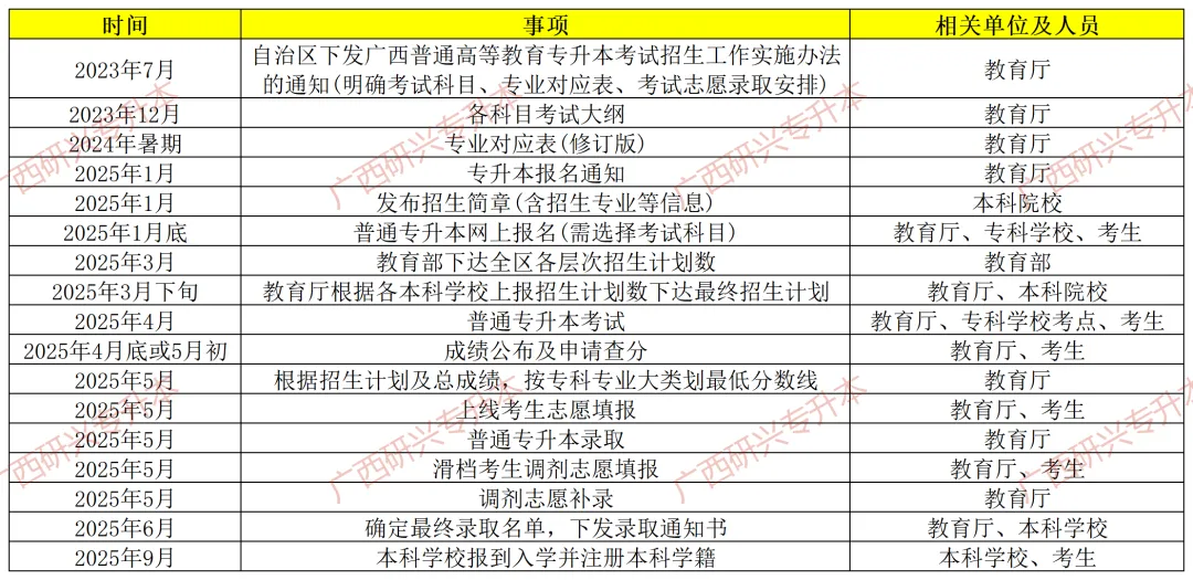 五、2025年广西壮族自治区普通高校专升本考试时间安排表(预计)