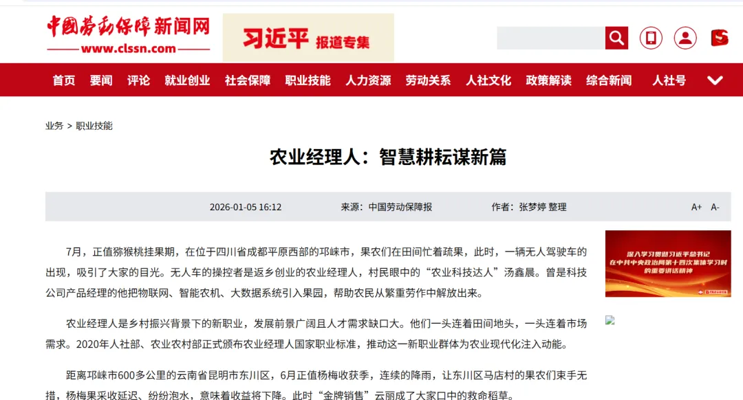 农业经理人是乡村振兴背景下的新职业,发展前景广阔且人才需求缺口大。他们一头连着田间地头,一头连着市场需求。2020年人社部、农业农村部正式颁布农业经理人国家职业标准,推动这一新职业群体为农业现代化注入动能。