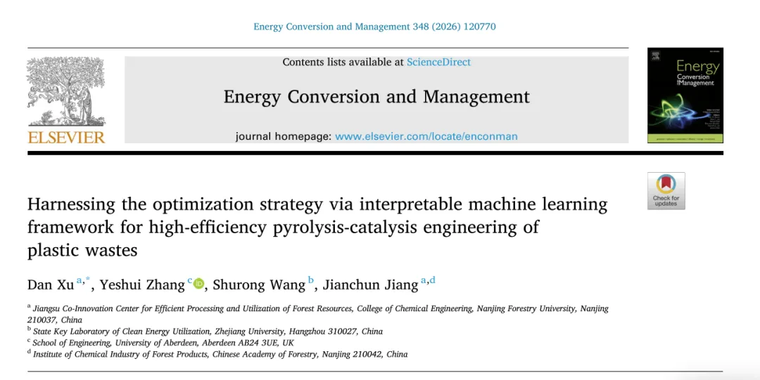 本文来自南京林业大学的团队,发表于《Energy Conversion and Management》期刊,文章聚焦塑料废弃物(PWs)热解 - 催化回收制高价值清洁氢气这一课题,针对传统试错法在催化剂与工艺优化中面临的高维、非线性难题,构建了融合分层数据挖掘、模型训练、可解释性分析及逆优化的可解释机器学习(ML)框架。文章以原料组成、催化剂特性和工艺参数为输入特征,训练了 5 种树基 ML 算法及多种非树基算法,筛选出最优的随机森林(RF)模型(R2=0.88,RMSE=9.78)。借助 SHAP 分析和部分依赖分析(PDA)明确了影响氢气产率的关键因素,最终提出了兼顾催化效率与经济性的最优工艺及催化剂设计方案,为塑料废弃物资源化制氢提供了数据驱动的优化策略。