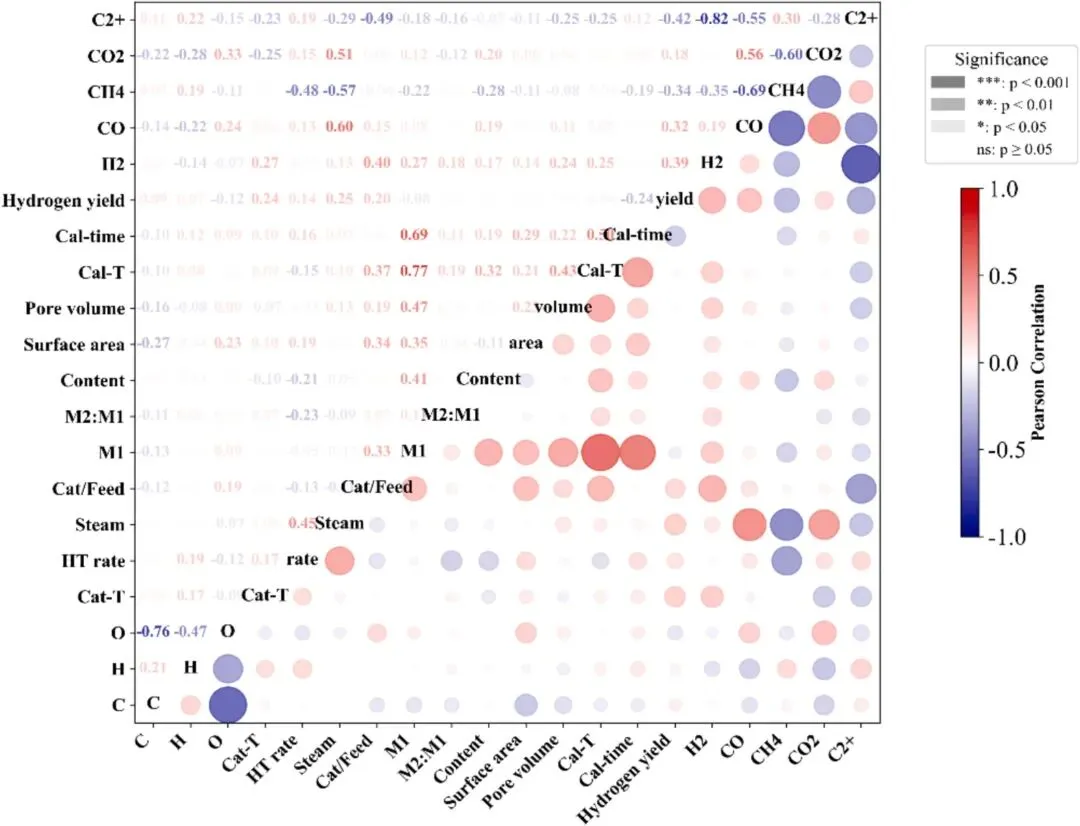 图3.PWs催化重整的每对特征的关联热图