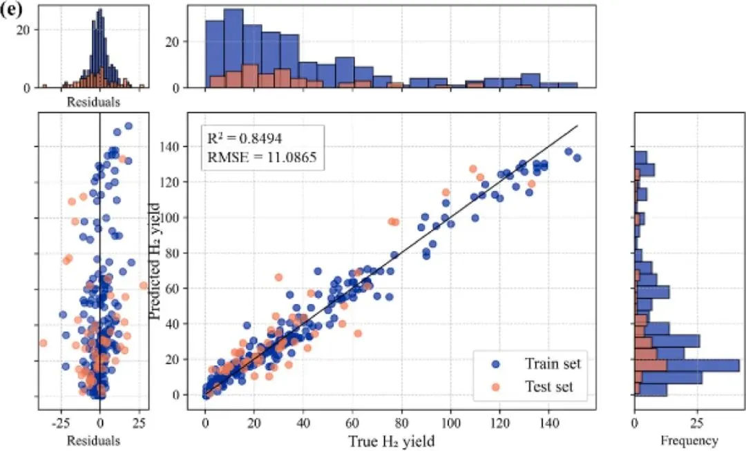 本文构建的可解释 ML 框架成功实现了塑料废弃物热解 - 催化制氢过程的精准预测与系统优化。研究表明,随机森林模型在氢气产率预测中表现最佳;蒸汽流量、金属负载量和催化剂与原料比是影响产率的核心因素;采用过渡金属基催化剂(比表面积约 100m²/g、孔容 0.2-0.3cm³/g、金属负载量 15wt%),在反应温度 800-850℃、升温速率 25-35℃/min、蒸汽流量 5g/h、催化剂与原料比 0.8 的条件下,可实现高效、高选择性制氢。该数据驱动方法突破了传统试错法的局限,为催化剂理性设计与工艺参数优化提供了全新路径。