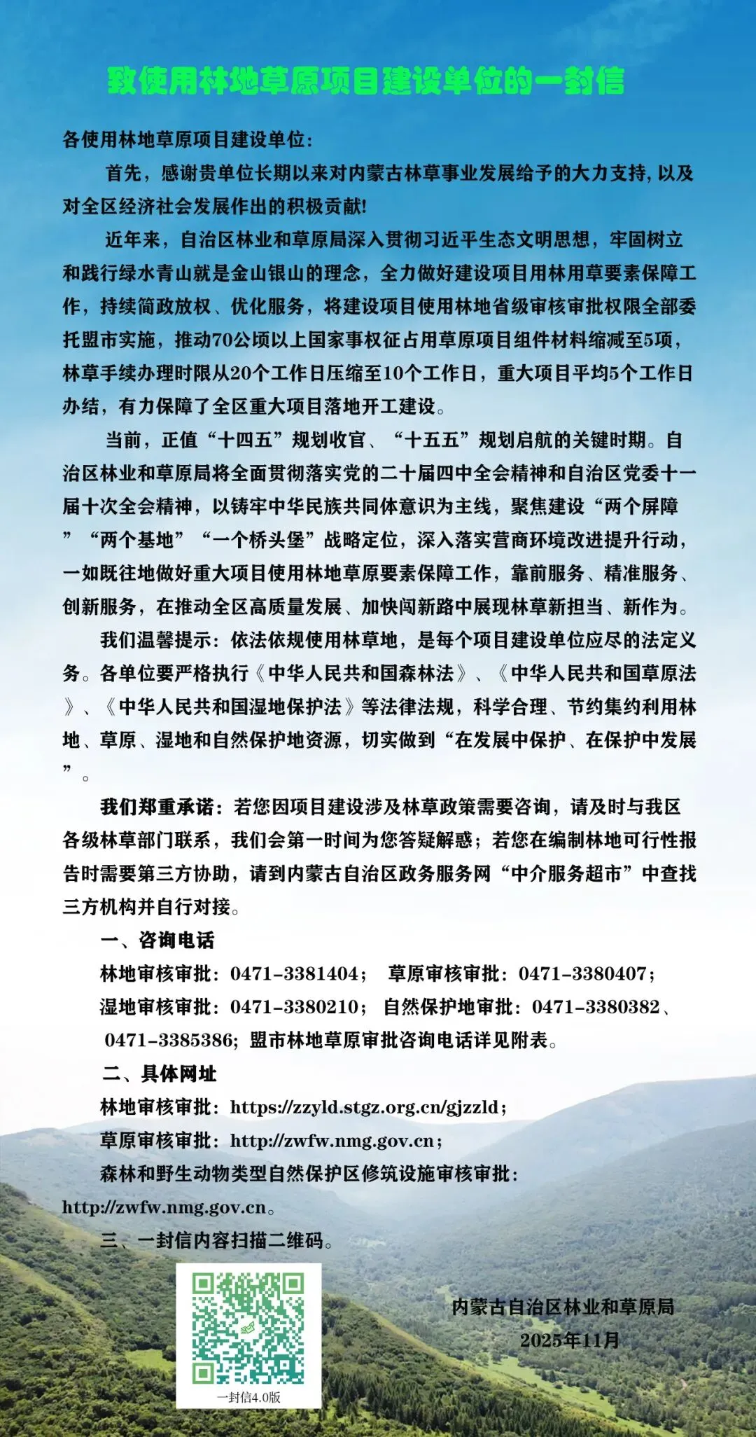 >内蒙古自治区林业和草原局致使用林地草原项目建设单位的一封信(4.0版)
