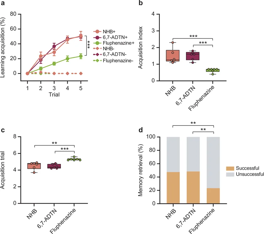 图6 使用氟奋乃静会削弱正常蜂巢蜜蜂的厌恶性学习和记忆图源Nature biotechnology, (2025)