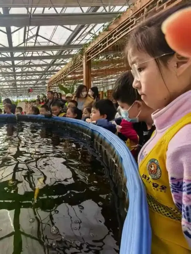 1. 导师带领参观基地规模化鱼菜共生展示区,直观观察鱼、菜生长状态及系统运作流程。