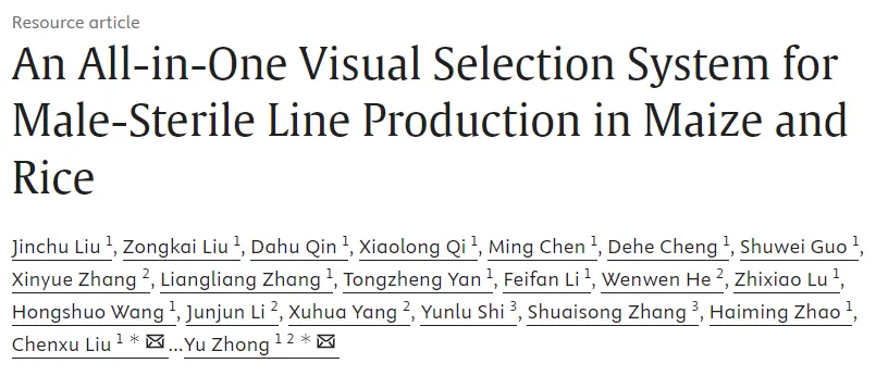Plant Com | 中国农业大学陈绍江教授团队开发新型的作物雄性不育系创制与繁育技术