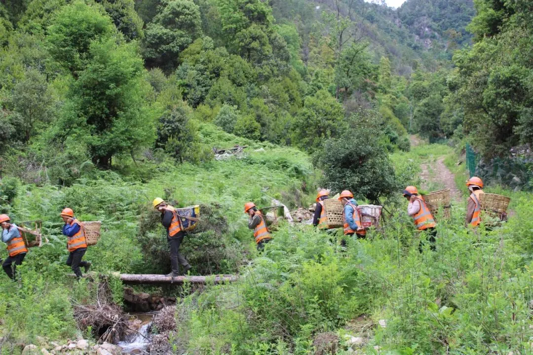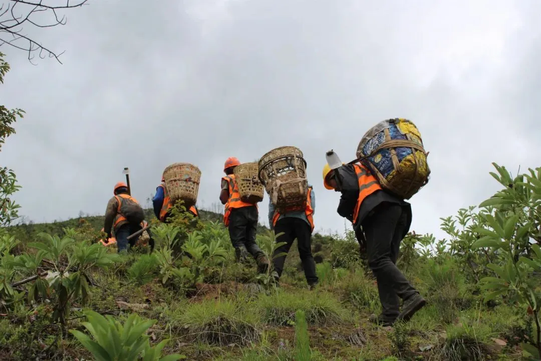 在大坪坝、杵峰村、七别古、犁地坪等地块,进山出山只能靠脚走,来回一趟需要三四个小时,许多道路无法满足运输需求,树苗要通过多次倒运才能送到种植现场。项目经理部动员当地农民工用上自家的牲畜、摩托、背篓等参与运输工作,采用人背、骡驮、摩托车拉等五花八门的运输方式运送树苗,大家将之称为“摩驮骡拉”。