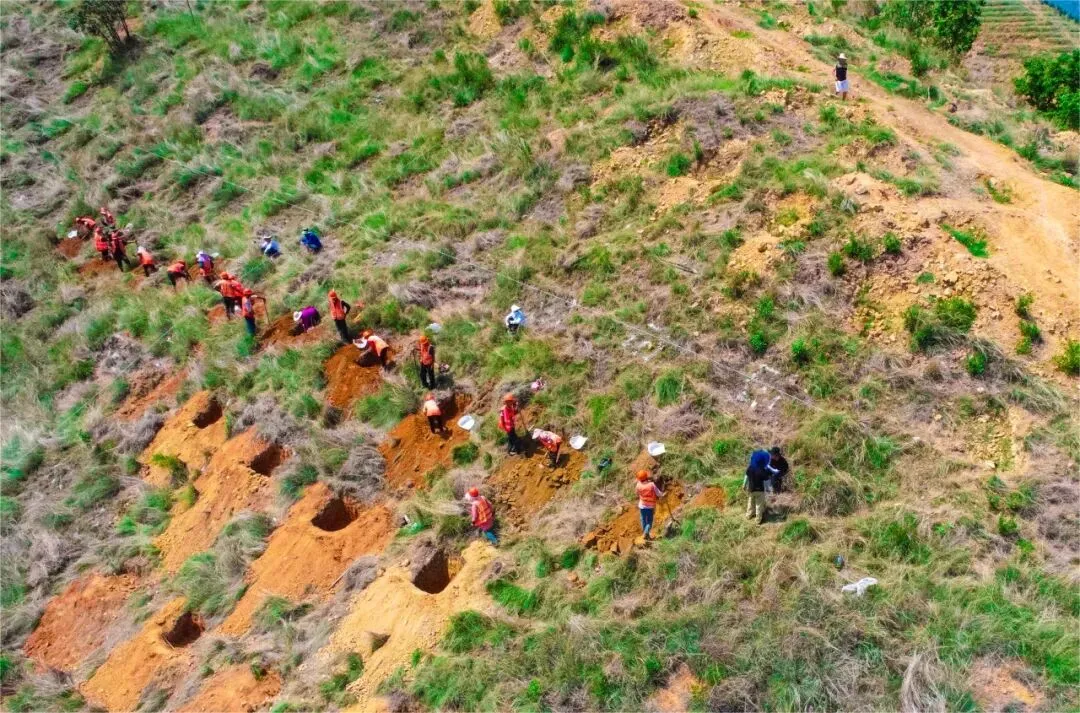 “项目建设至今,栽植期间我们日均投入4000余人,施工高峰期投入机械设备700余台套。”据项目负责人卢向鹏介绍,项目预计总工日155万个,用工均为当地群众,大家通过运输、栽树、打塘等工作获得“第二块钱”。作为林业生态扶贫项目,项目聘用大量当地农民工,一方面解决大家的就业问题,让大家在家门口就把钱挣了,推进脱贫攻坚和乡村振兴有效衔接,另一方面持续在建设绿水青山中发力,带领当地人民一同守护好家乡的“金山银山”。
