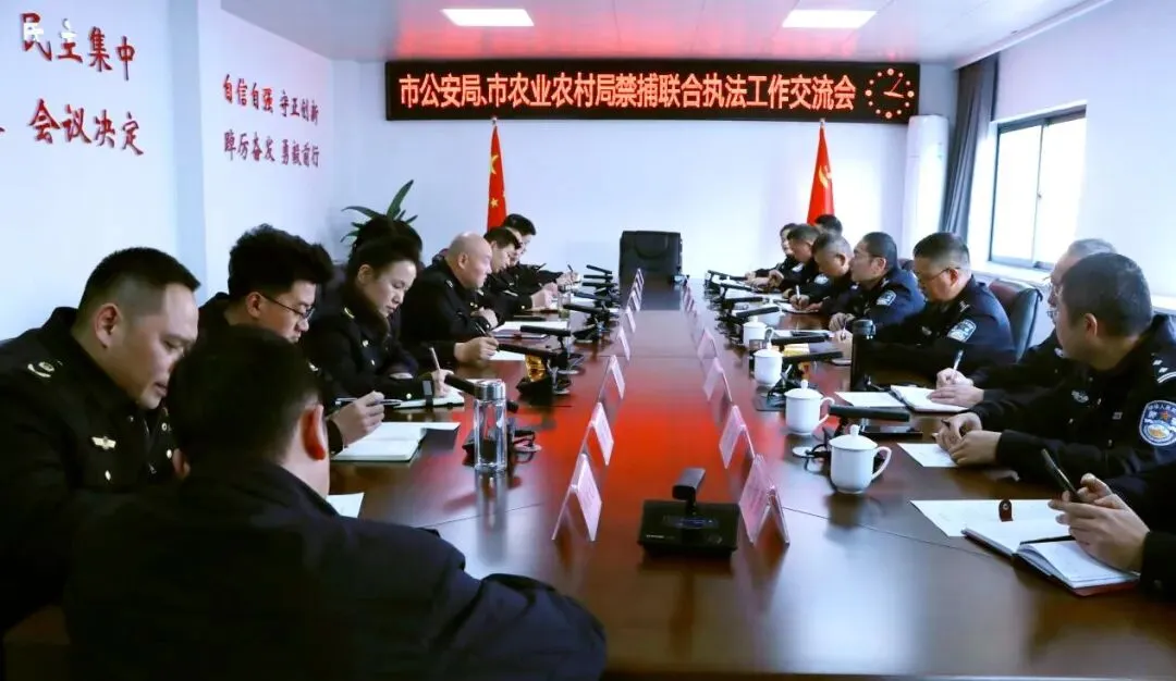 为深入贯彻落实长江十年禁渔决策部署,持续强化禁捕行政执法与刑事司法衔接,提升打击非法捕捞犯罪合力,1月8日,市公安局水上警察支队支队长龚健、法制支队支队长谭旭东带队到市农业综合行政执法支队就深化行刑衔接与执法协作进行专题交流。市农业综合行政执法支队党委书记、支队长甘德贵参加。