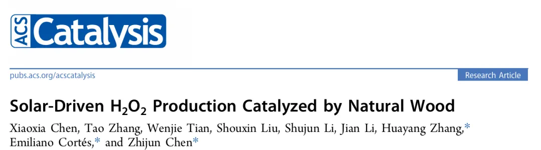 近期,东北林业大学陈志俊教授团队在《ACS Catalysis 》发表的研究:“ Solar-Driven H2O2 Production Catalyzed by Natural Wood”。