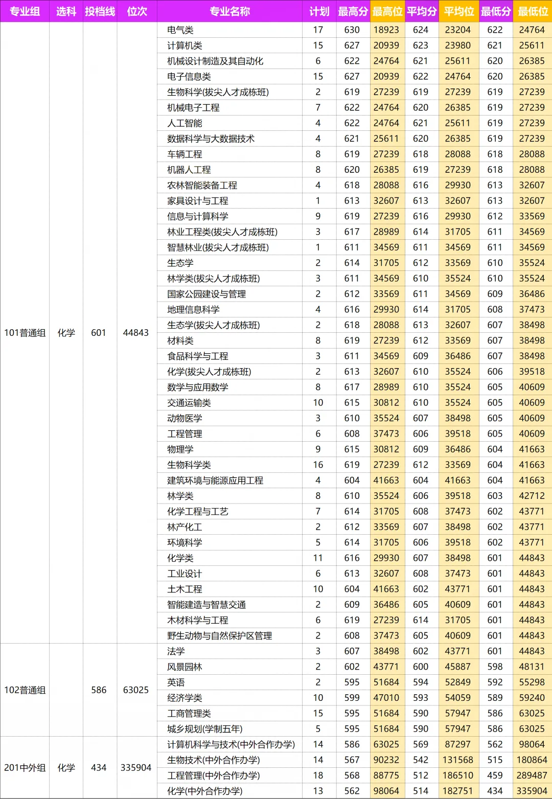 2025年东北林业大学河南专业分数线及位次