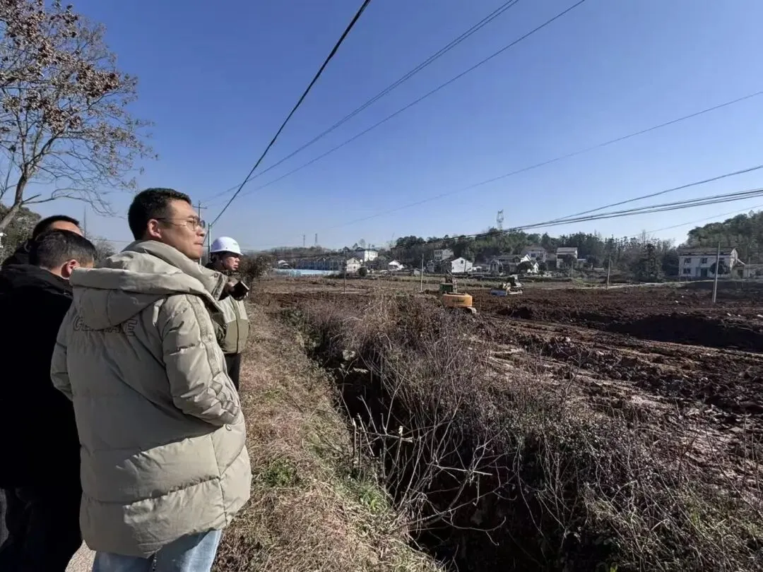 1月7日,覃爱华同志带队到王家畈镇小河村、老屋棚村就高标准农田建设项目推进事宜开展现场指导协调工作。