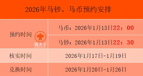 根据央行公告,1月13日即明晚马钞、马币分批开启预约,具体预约安排如下👇注意:每人每币种最多能约20枚,每人最多能代领5人。各地区具体预约银行如下,大伙记得提前找好自己所在地区的预约银行。最简单的预约方法,就是在手机上直接预约!我已经将所有预约入口都汇总在一起了,大家赶紧收藏保存,到时点开就能约!第一步:长按·识别·关注我们的公众号👇