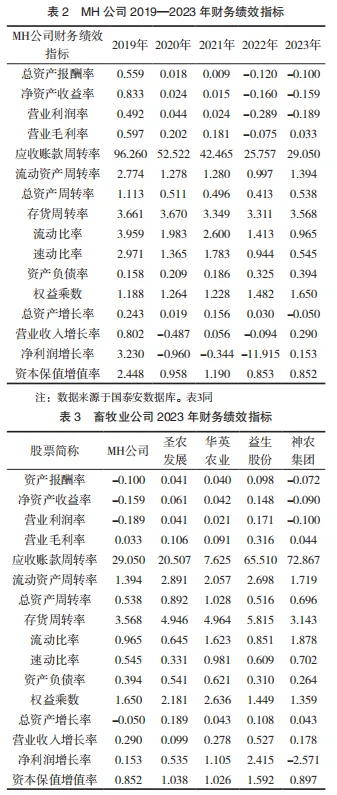 随着生活质量的提升与消费多元化的不断发展,人们对高品质、多样化农畜产品的需求持续增长,推动了畜牧业规模的扩张。畜牧业作为农业的关键支柱产业,与民生保障、消费市场紧密相连,对支撑经济社会发展意义重大[1]。山东民和牧业股份有限公司(以下简称“MH公司”)成立于1997年5月,是一家集畜禽养殖、动物饲养、屠宰及生产加工等业务于一体的畜牧业上市公司。以MH公司为研究对象,深入分析其财务绩效,通过纵向与横向对比结果,剖析其经营过程中存在的不足,探索切实可行的改进策略,以提升企业经营水平,推动其实现可持续发展。
