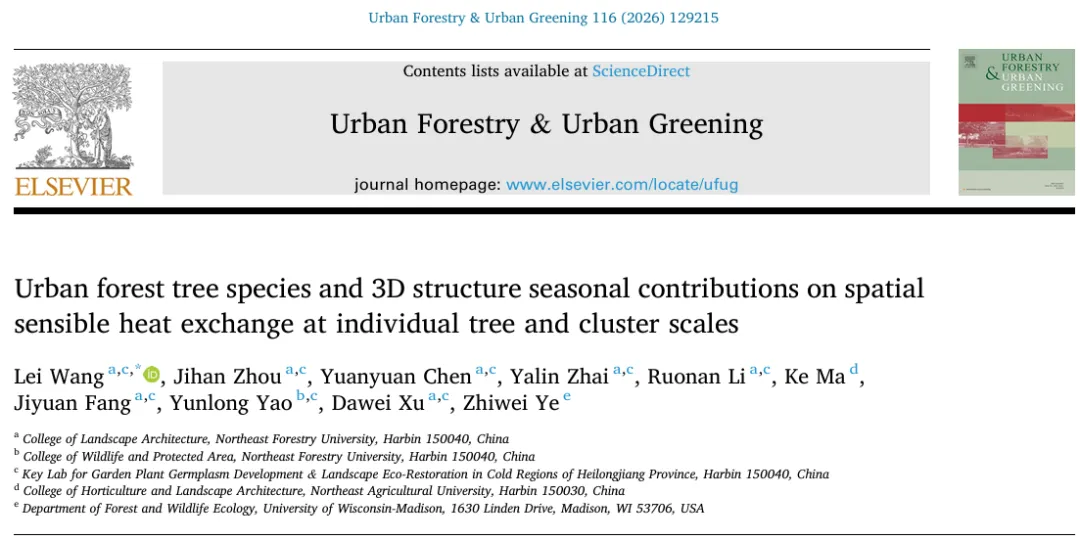题目:Urban forest tree species and 3D structure seasonal contributions on spatial sensible heat exchange at individual tree and cluster scales