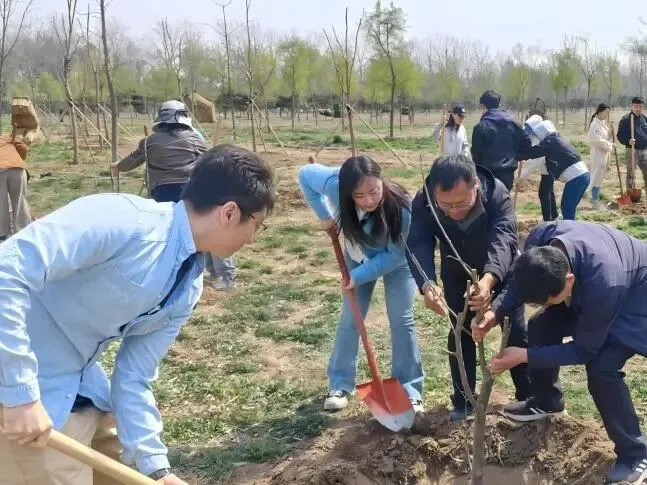 依托“互联网+全民义务植树”基地,开展植树活动,栽植白皮松、连翘等乡土树种。通过线上线下结合宣传林长制政策与生态理念,营造“人人爱绿、植绿、护绿”良好氛围,凝聚共建共享合力。