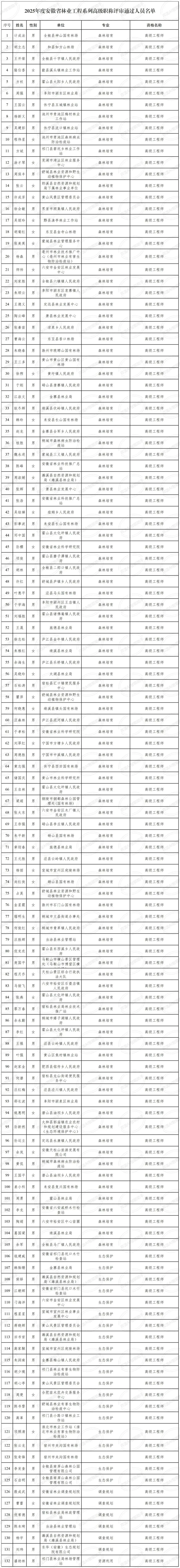 经高评会评审,计成法等132名同志通过安徽省林业工程系列高级职称评审。根据有关规定,现予以公示,公示时间至2026年1月15日。公示期内,如有异议,请本着实事求是原则,提供具体线索以书面形式向省纪委监委驻省委组织部纪检监察组或省人社厅专技处、机关纪委反映。反映情况和问题必须实事求是,应签署真实姓名、工作单位和联系方式;对线索不清的匿名信和匿名电话,公示期间不予受理。