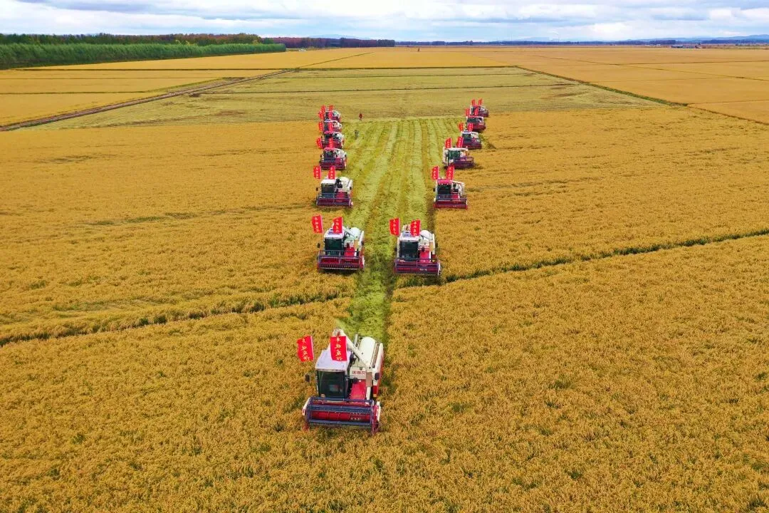 万亩级智慧农业示范区水稻收获