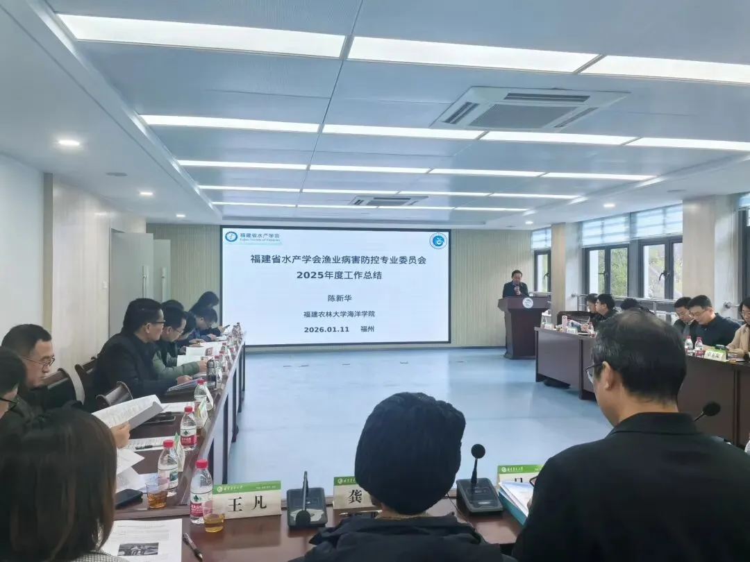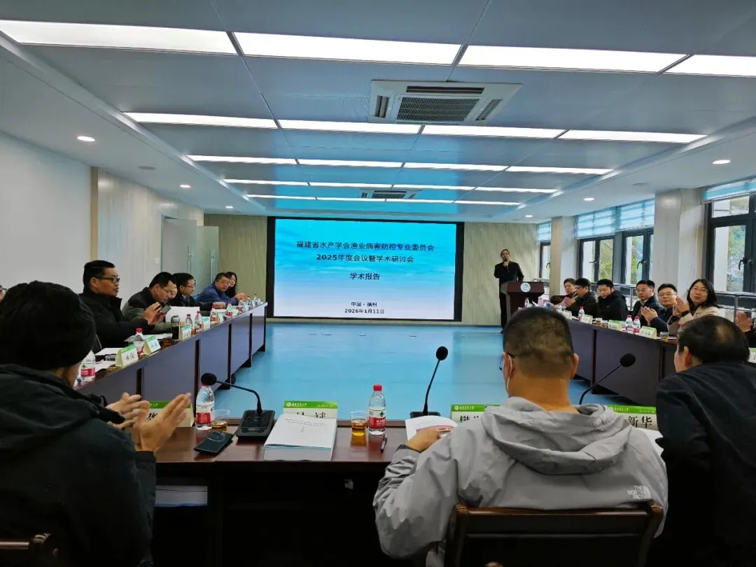 1月11日,省水产学会渔业病害防控专业委员会在省淡水水产研究所召开专委会2025年度会议暨学术研讨会。来自福建农林大学、福建师范大学、集美大学、省水产技术推广总站、省淡水水产研究所、省农业科学院、闽东水产研究所、福州市海洋与渔业技术中心,以及部分市县水产技术推广站等,近40名委员参加会议。会议由专委会副主任委员吴斌正高级农艺师主持。
