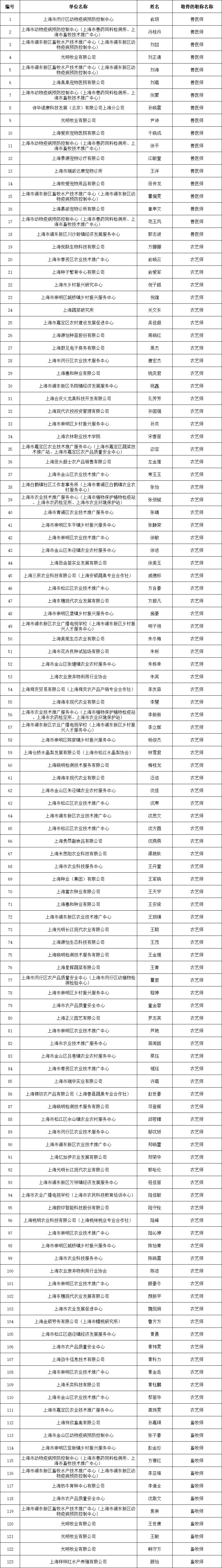 【职称公示】2025年度上海市农业系列中级职称评审名单公示