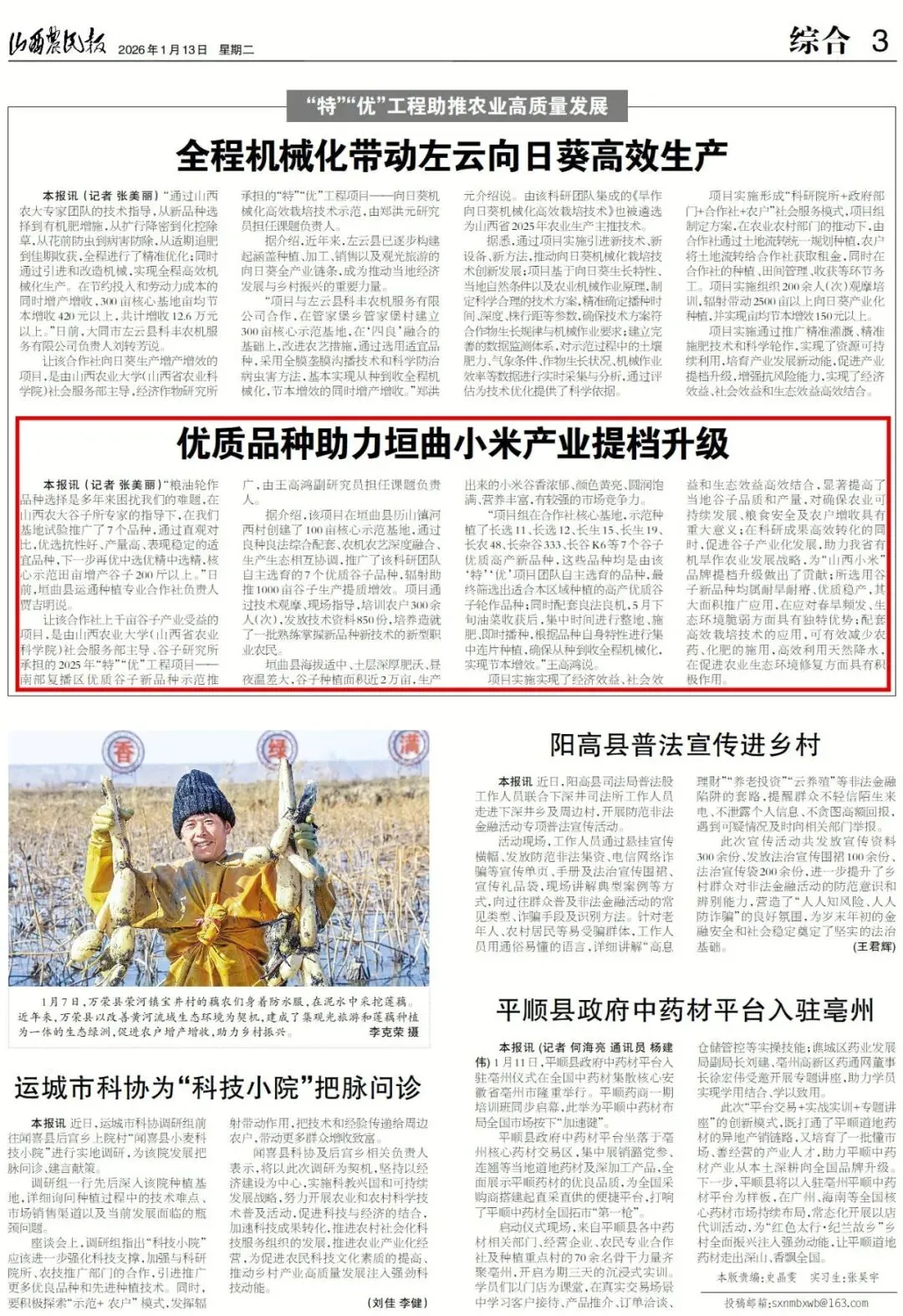 让该合作社上千亩谷子产业受益的项目,是由山西农业大学(山西省农业科学院)社会服务部主导、谷子研究所承担的2025年“特”“优”工程项目——南部复播区优质谷子新品种示范推广,由王高鸿副研究员担任课题负责人。
