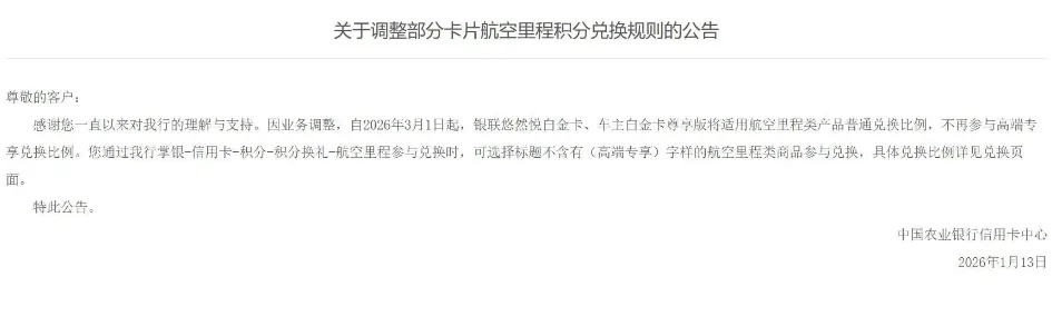 虽然农行提前公告,操作合规,但对于老持卡人来说,依旧是“一记闷棍”。