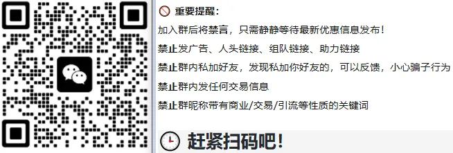 扫码即可加入我们的线报群,群内的优惠信息更新飞快,第一时间获取最新优惠信息!错过就没了!
