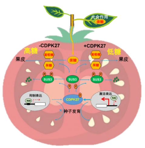 中国农业科学院/中国热带农业科学院黄三文团队联合山东省农业科学院等机构,发现了抑制番茄果实糖积累的刹车基因,阐明了番茄果实中糖积累的分子调控机制。该研究为解决育种中兼顾品质和产量的难题提供了新思路。CDPK27工作模型 西湖大学/清华大学柴继杰团队与南京农业大学王源超团队联合中国科学院等机构,发现植物多聚半乳糖醛酸酶抑制蛋白,通过劫持病原菌致病因子酶,形成蛋白复合物,将其转化为免疫信号,激活自身免疫。该研究为理解植物-病原互作提供了全新范式。