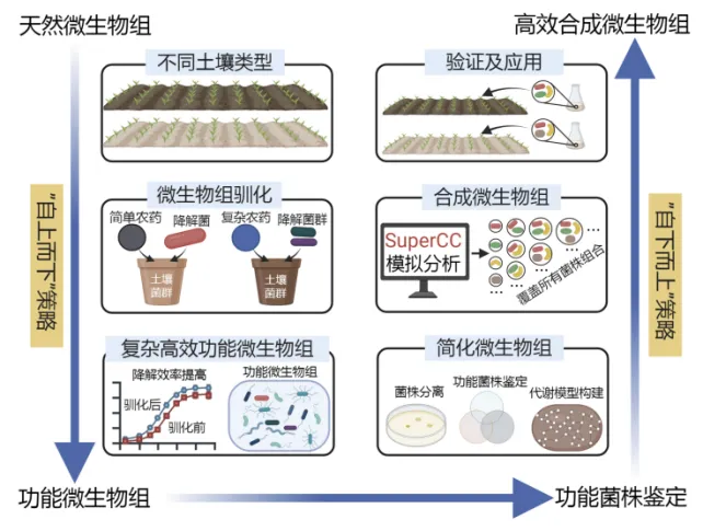 南京农业大学蒋建东、高彦征、徐希辉团队联合华南农业大学等机构,建立“自上而下”和“自下而上”相结合的合成微生物组设计构建体系,实现对污染物降解效率的大幅提升。该研究为合成微生物组的设计构建提供理论支撑和技术方法。