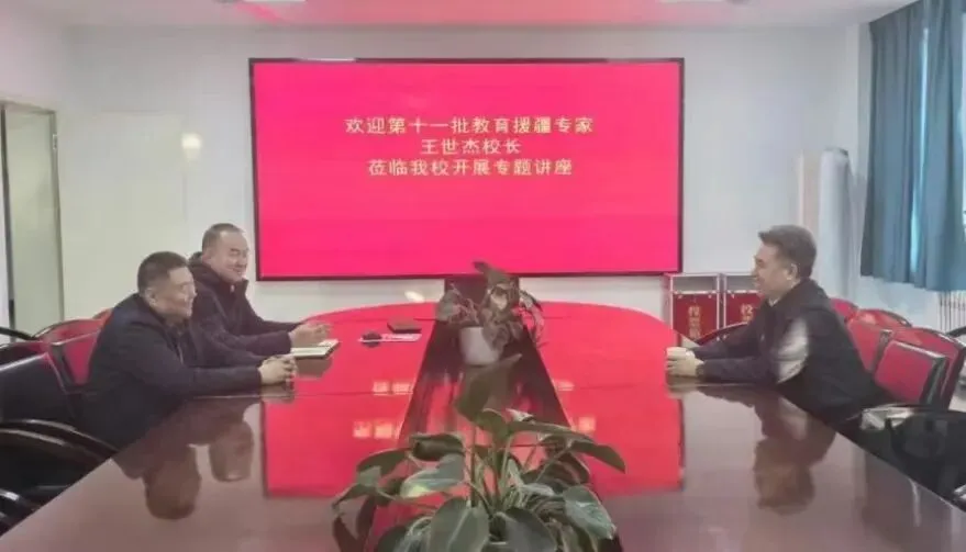 讲座开展前,新疆农业大学附属中学党委书记唐军、党委副书记及校长佘国山与王世杰教授进行了深入交流,对专家团队长期以来给予学校教育教学工作的关心与支持表示衷心感谢,并详细介绍了附中的历史及73年以来所取得的教育教学成绩。