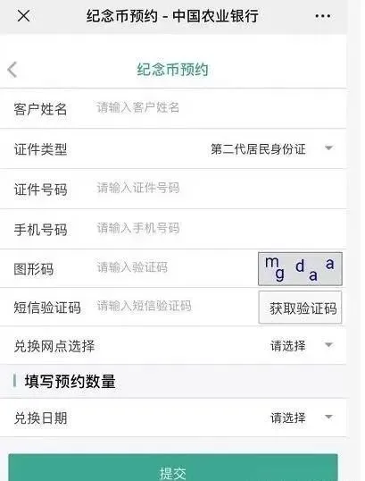 4.微信公众号:“中国农业银行微银行”—“生活驿站”—“纪念币预约”、“中国农业银行”—“热门推荐”—“纪念币预约”或“中国农业银行云客服”—“智享服务”—“纪念币预约”