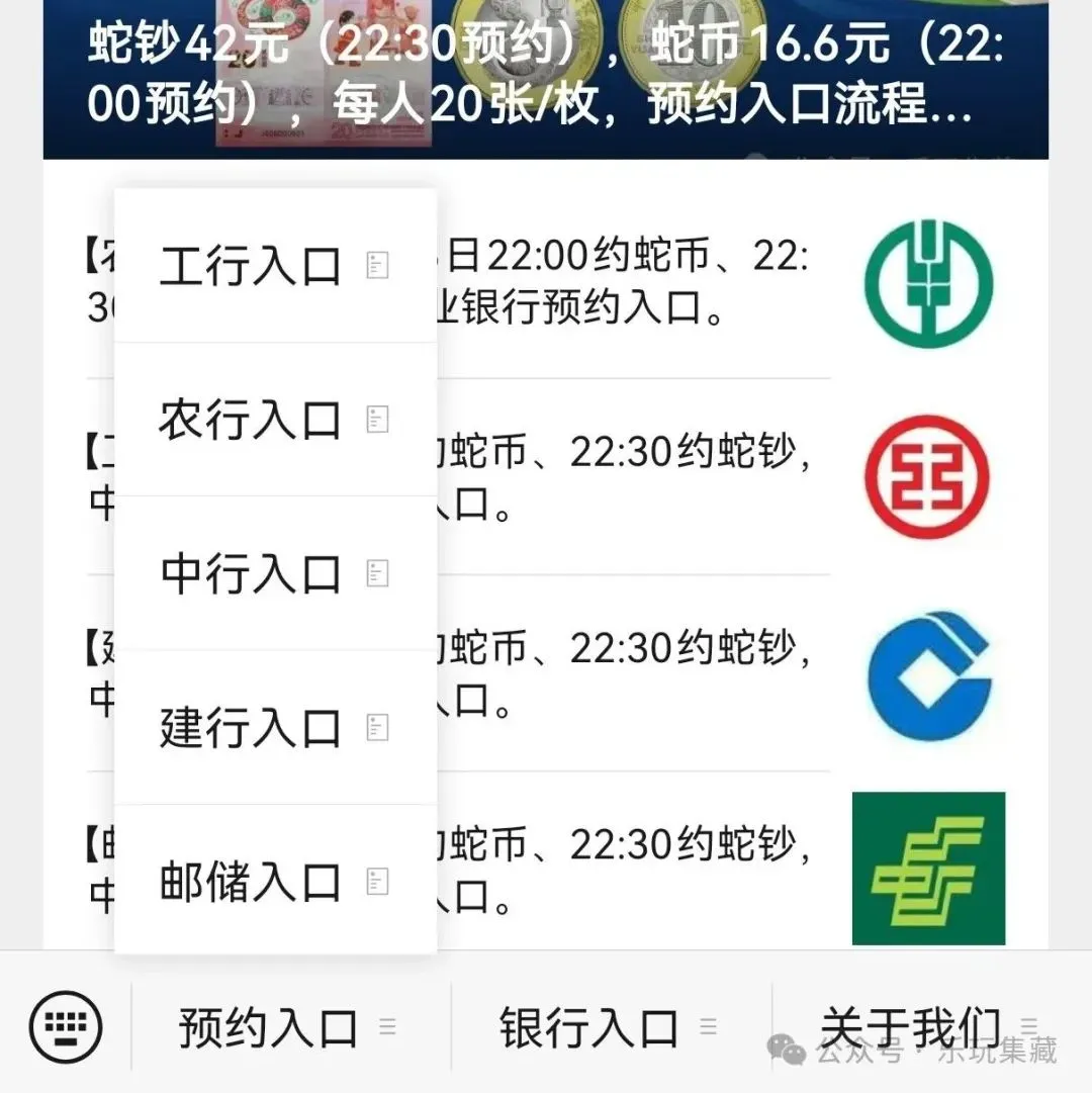 1.掌上银行:首页广告图或搜索“纪念币预约”进入