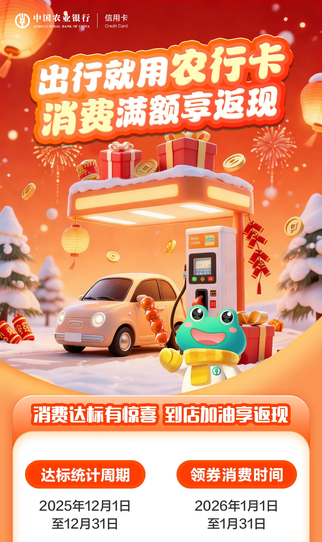 • 参与条件:需要在2025年12月用农行信用卡累计消费满3000元。这个门槛对于大部分持卡人来说并不高,正常消费很容易达到。