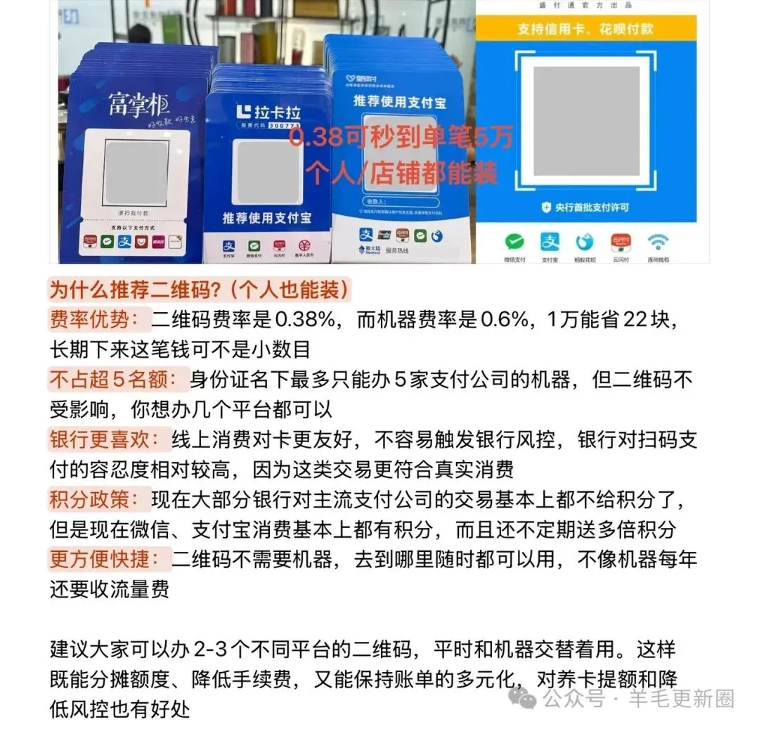 本人已在支付行业深耕9年以上诚信靠谱,如果你也需要增加一机多户免押金或0.38二维码(个人店铺均可装秒到)思+我会根据你的月交易量来给你配置机器+二维码,希望能帮你把卡用好或避免被限制降额封卡