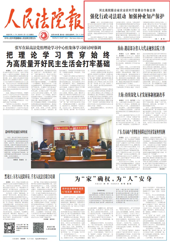 近日,河北省高级人民法院与河北省农业农村厅签署《关于加强种业知识产权保护合作备忘录》,建立健全种业知识产权沟通会商、多元保护、信息共享等机制,提升行政保护与司法保护协同效能,深化行政执法与司法衔接,构建全链条种业知识产权保护格局。