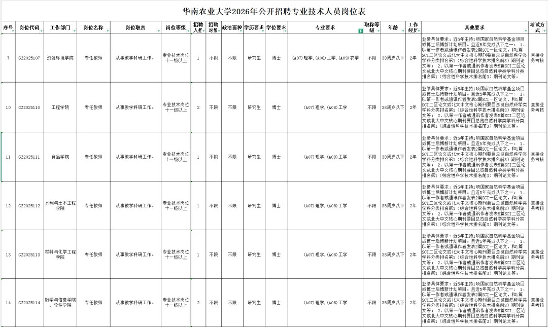 附件:1.华南农业大学2026年公开招聘专业技术人员岗位表.xls