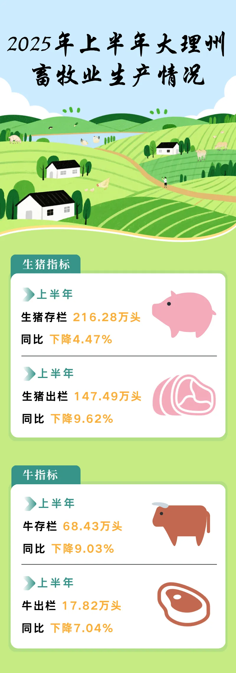 >【数据发布】2025年上半年大理州畜牧业生产情况