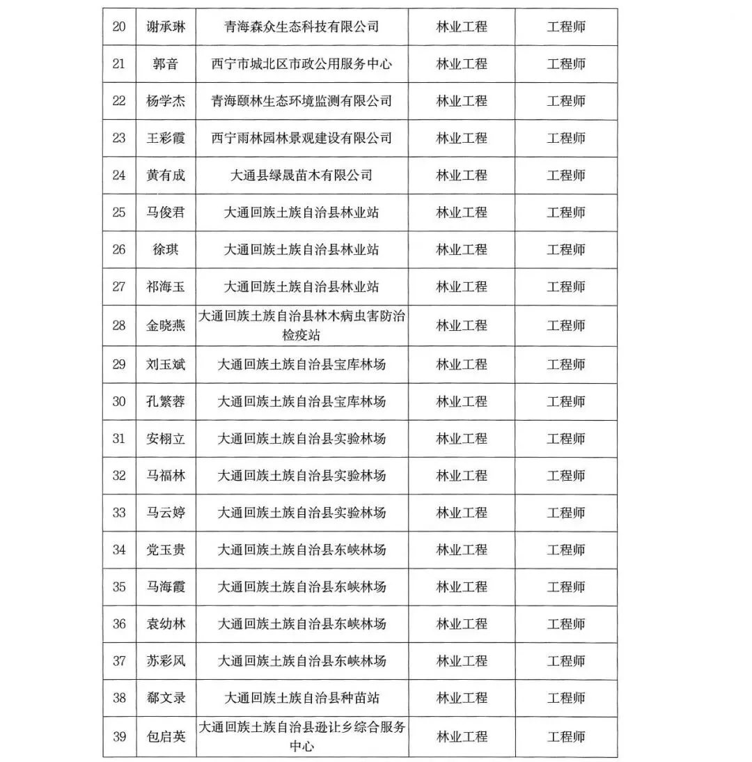 来源:西宁市林业工程系列中初级职称评审委员会
