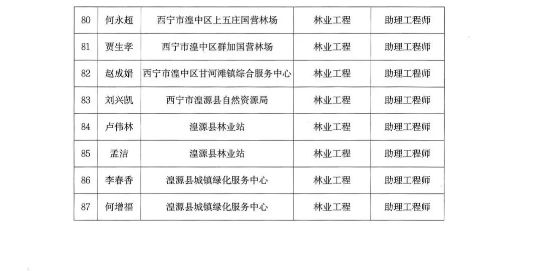 西宁市林业工程系列中初级职称评审委员会