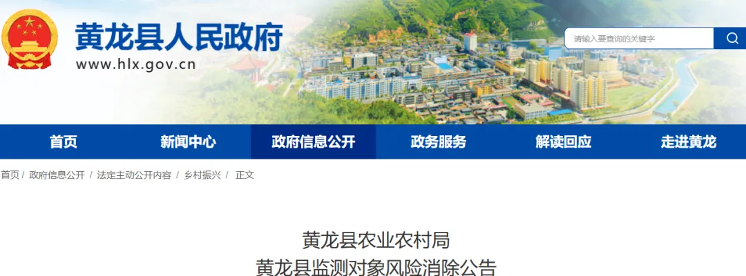 根据《黄龙县健全防止返贫动态监测和帮扶工作机制实施方案》要求,我县对三岔镇人民政府拟定的风险消除监测对象周海1户3人进行了审核,同意将周海等1户3人确定为监测对象风险消除户,现予以公告(名单附后)。