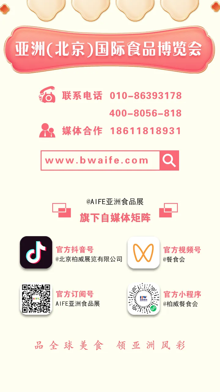 2026年4月17-19日,亚洲(北京)国际食品博览会将在北京・中国国际展览中心(朝阳馆)启幕!展会锚定亚洲饮食文化交融与产业升级趋势,搭建全产业链创新对接平台,汇聚全球优质企业与核心品牌,覆盖产业全链路。现场设趋势峰会、新品首发、商贸配对等活动,助力企业把握风口、链接核心资源。诚邀行业同仁共赴这场亚洲食品行业旗舰盛宴,携手书写产业繁荣新篇!