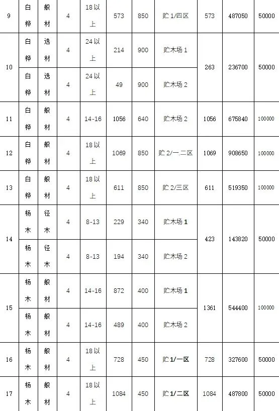 1.标的物总量:本次竞价销售木材总量约为19233立方米。实际数量以现场检尺为准。