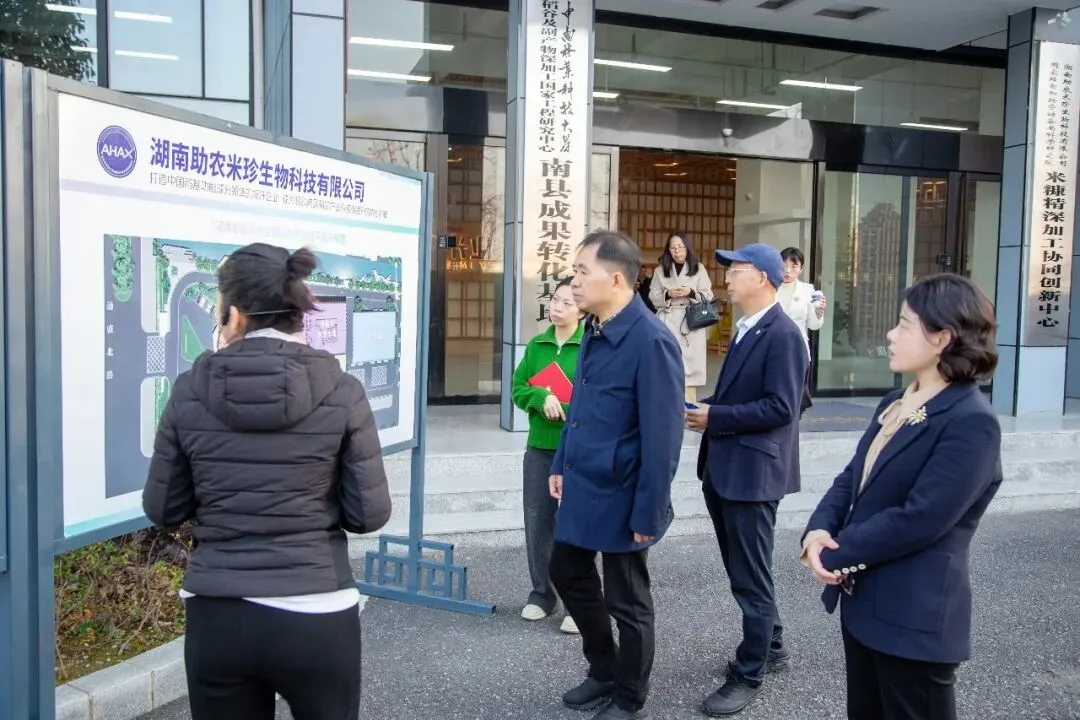 1月13日,中国工程院院士、湖南农业大学党委副书记、校长邹学校一行莅临我司调研指导工作,南县县委书记钟剑波,助农米业总经理廖娟陪同考察。